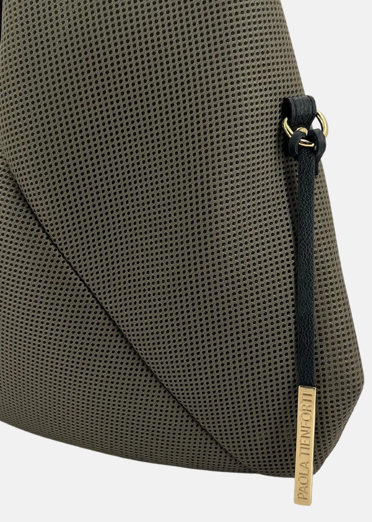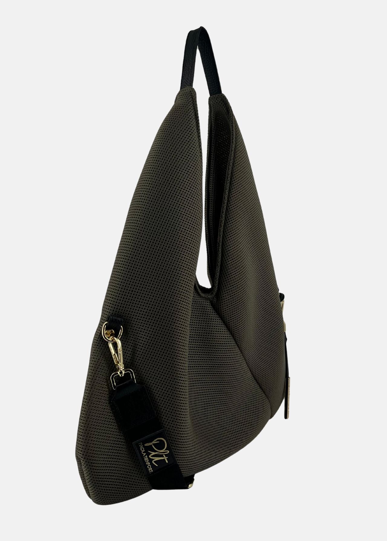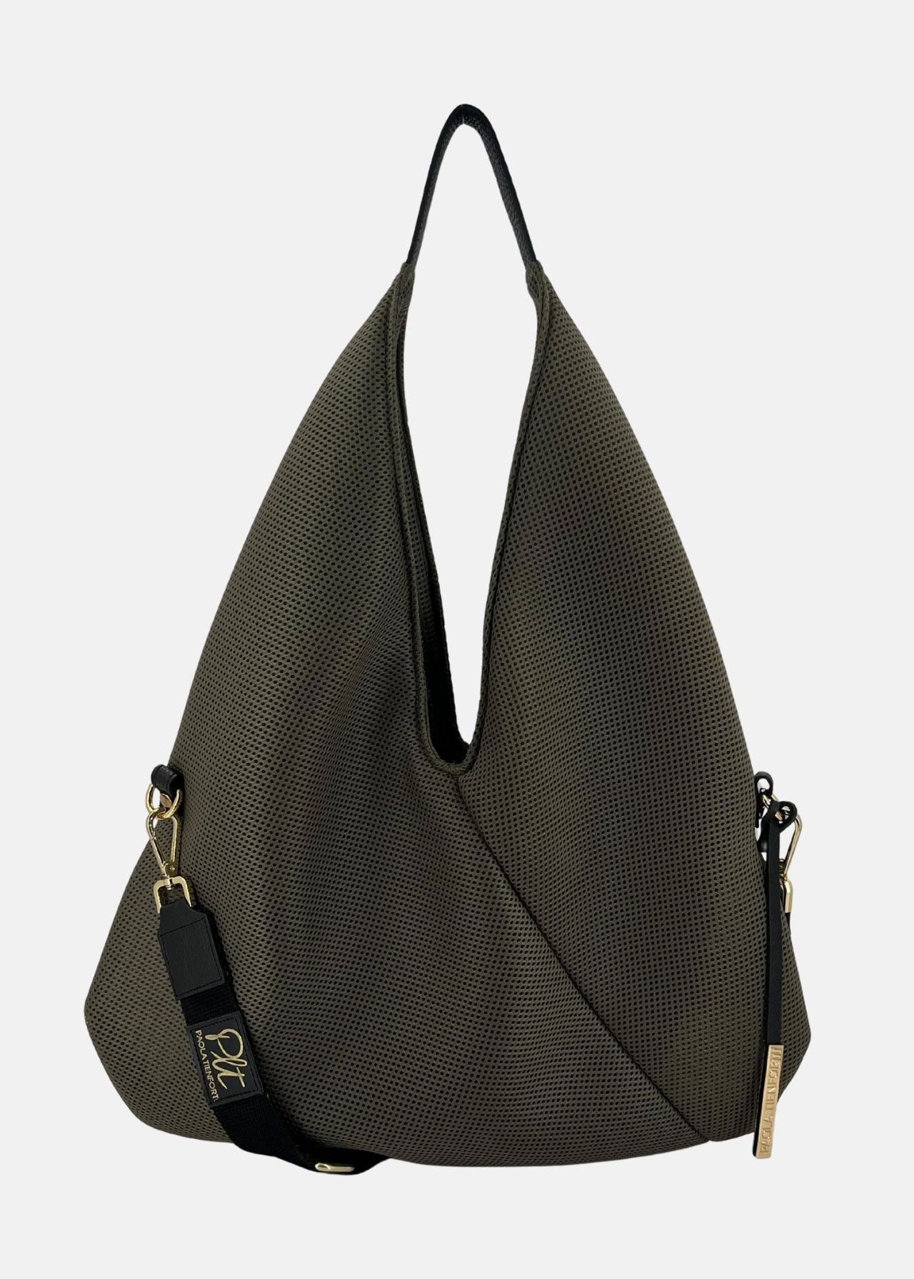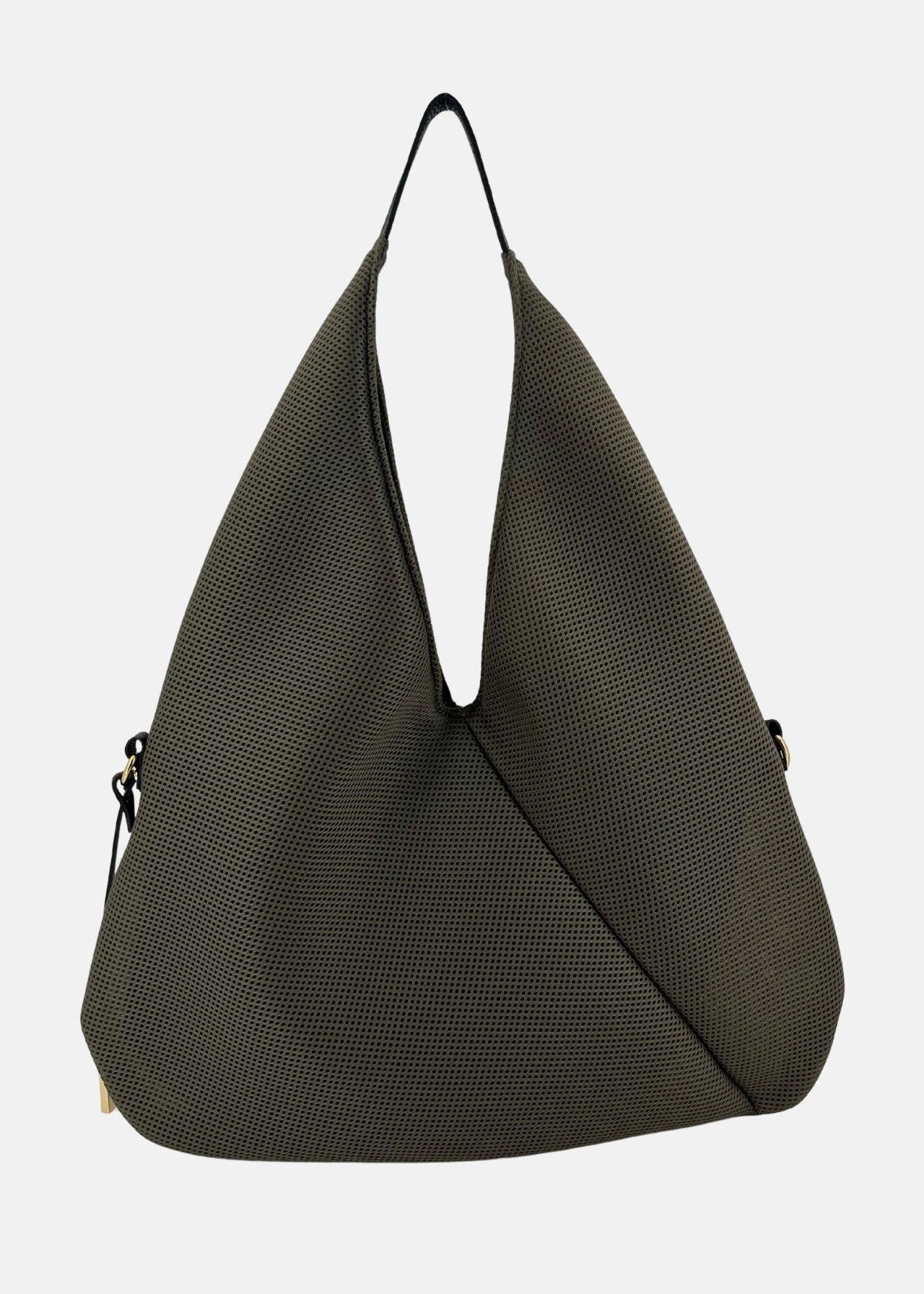 Sacca hobo in tessuto tecnico traforato con dettagli oro