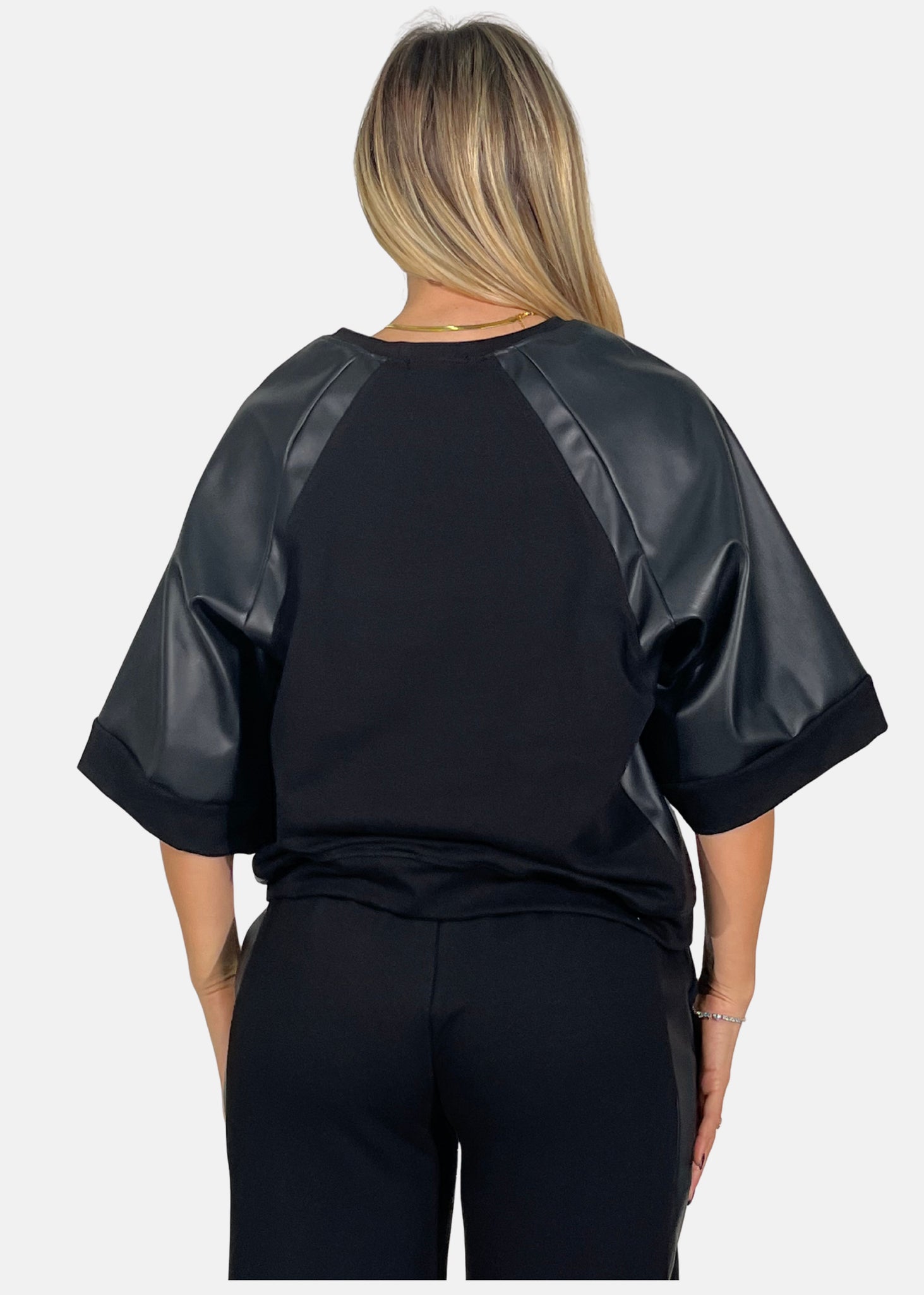 - 🌿 Maniche ampie in ecopelle lucida: contrasto di texture dal carattere deciso