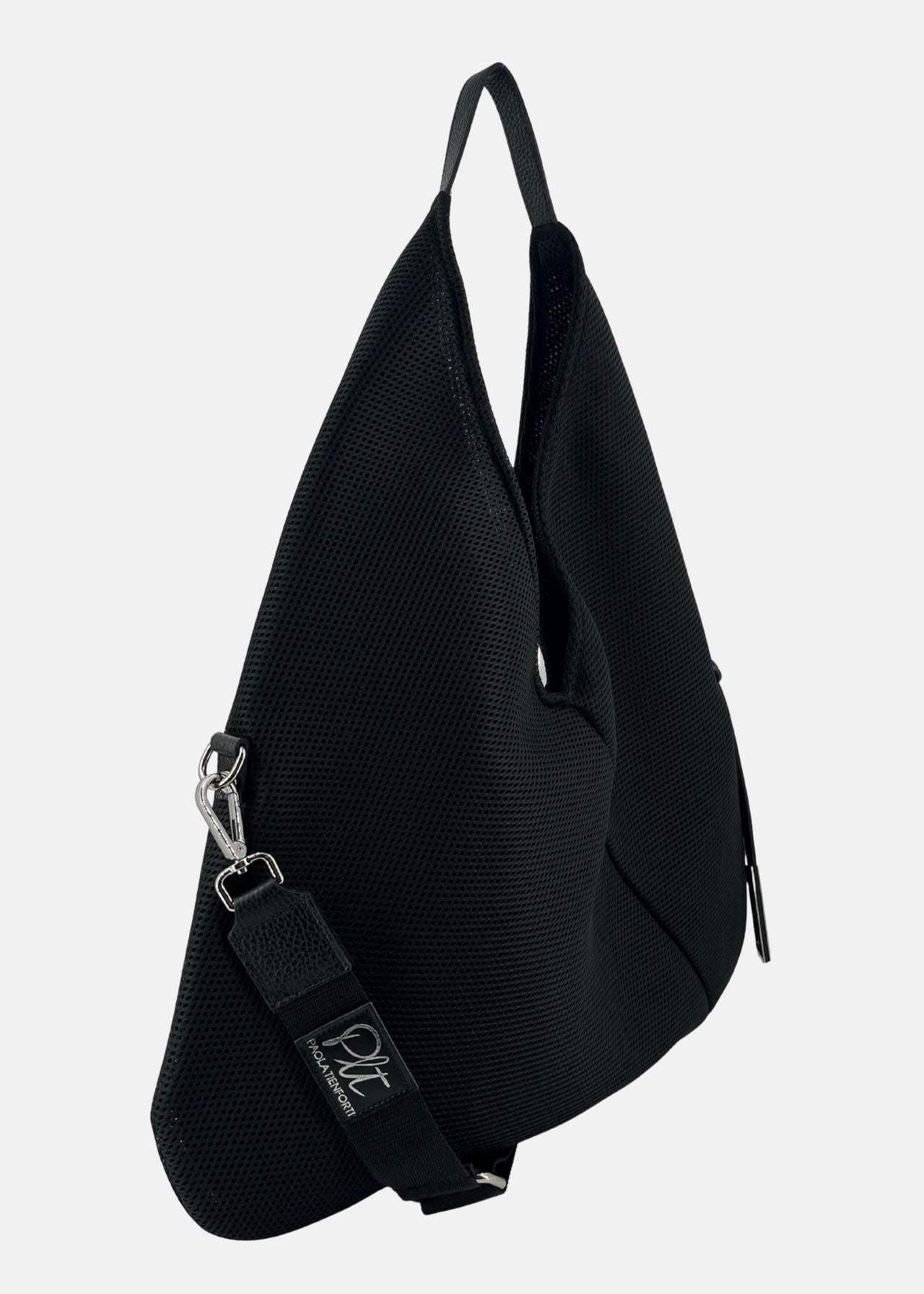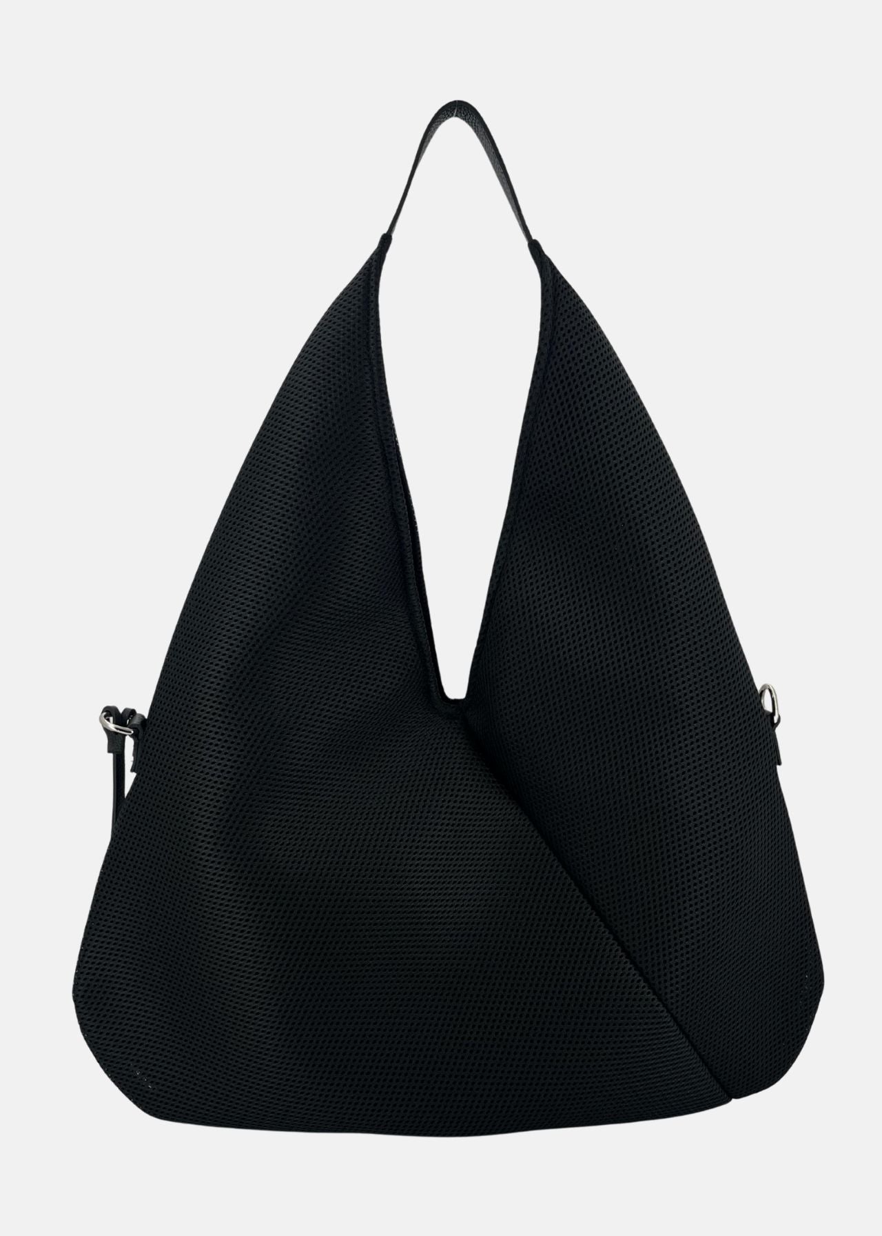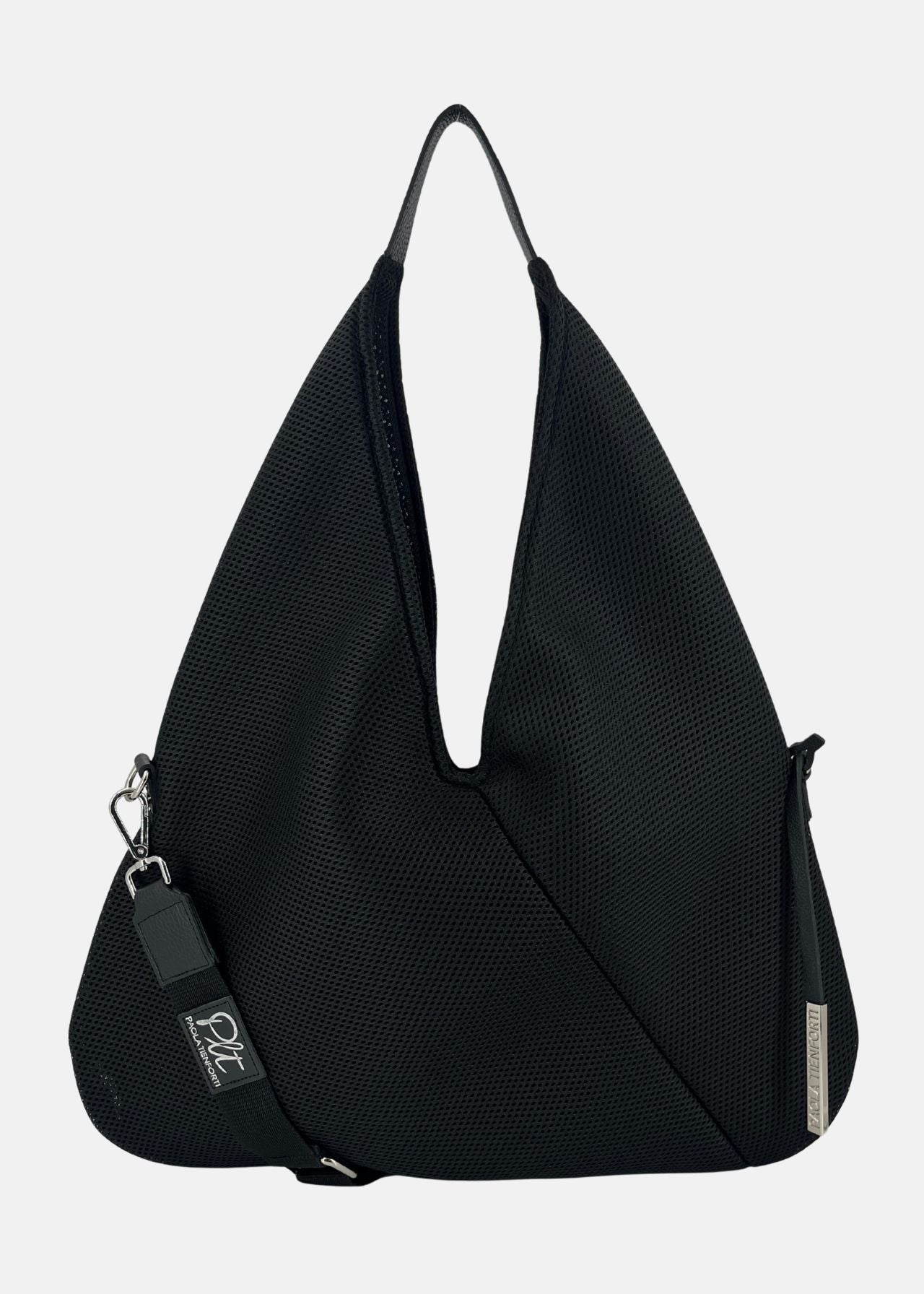 Sacca hobo in tessuto tecnico traforato con dettagli argento