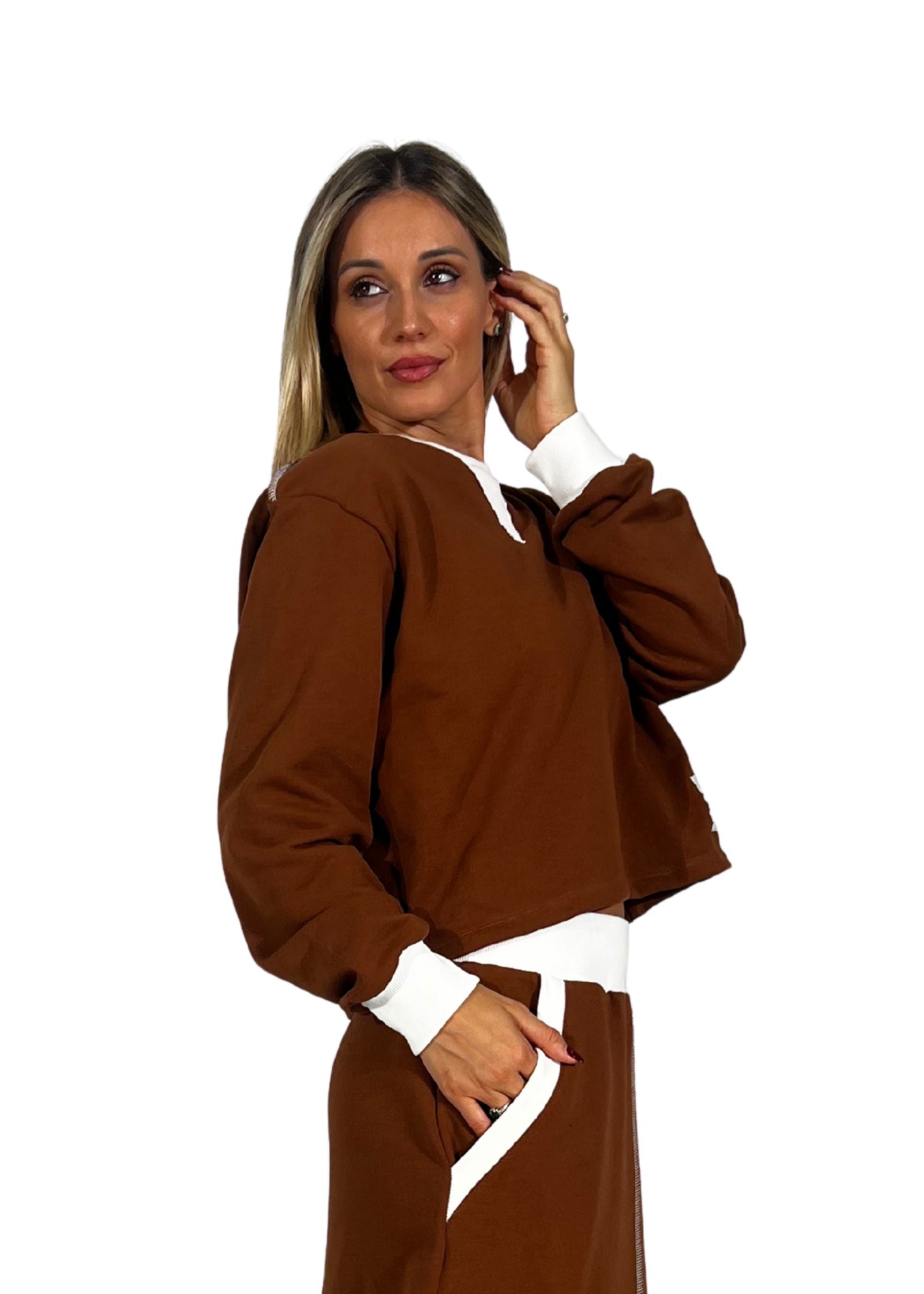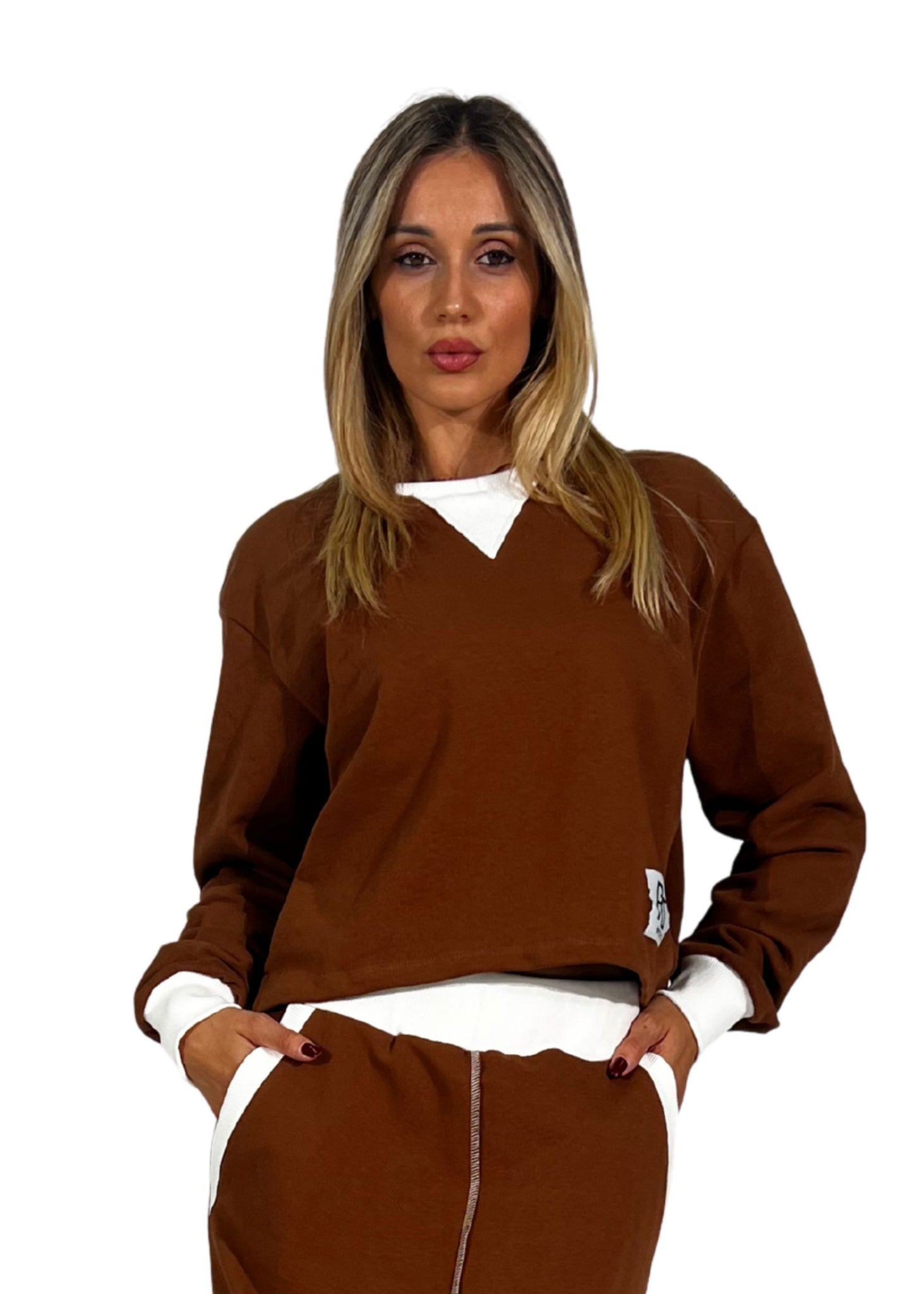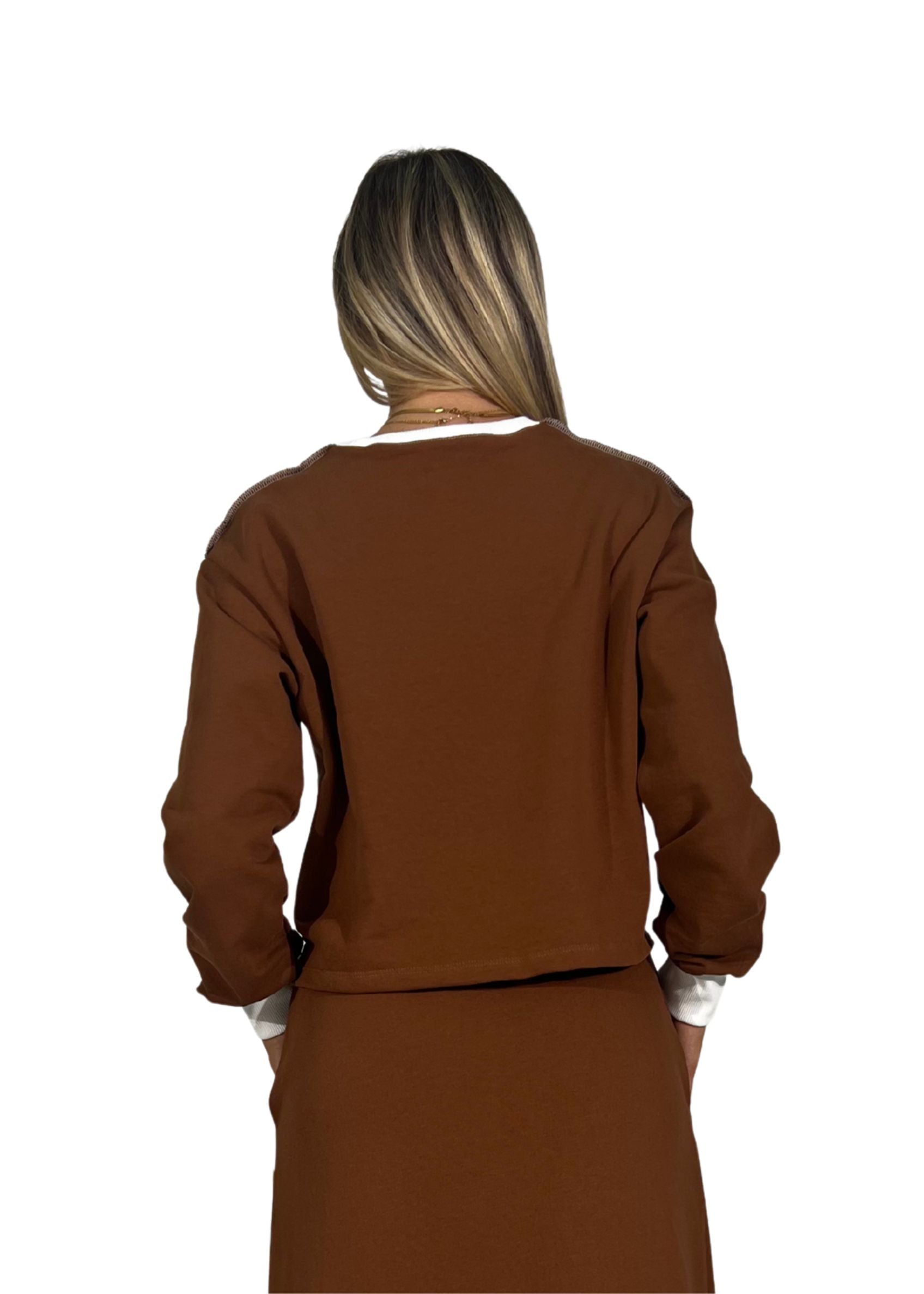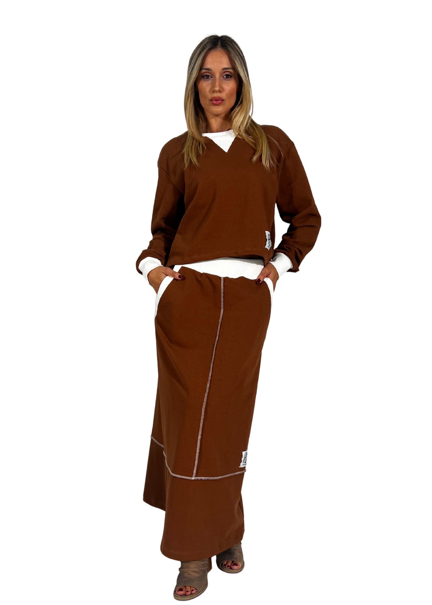 • 🎨 Contrasto tabacco & panna – collo, polsini e inserti panna per un look contemporaneo.