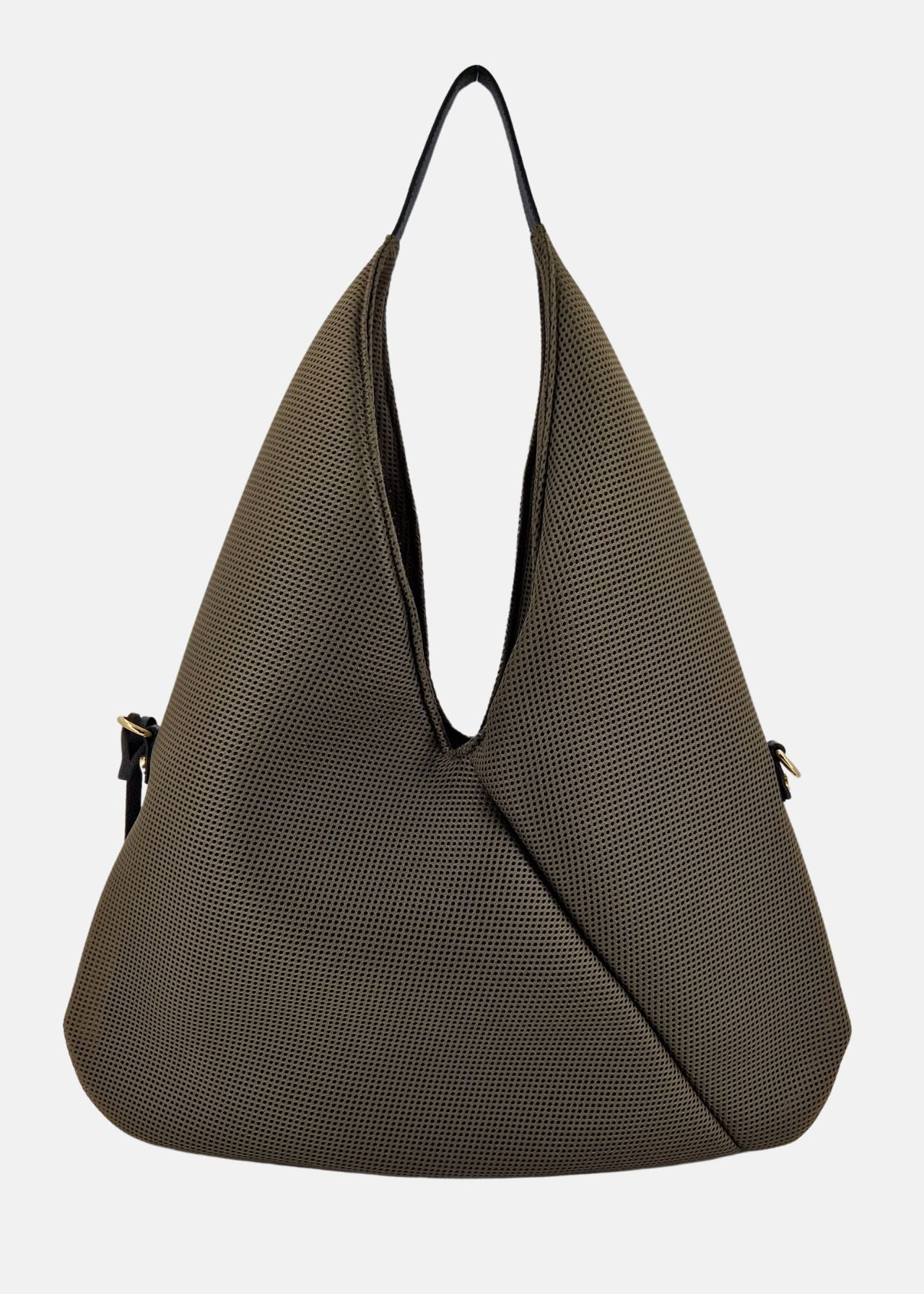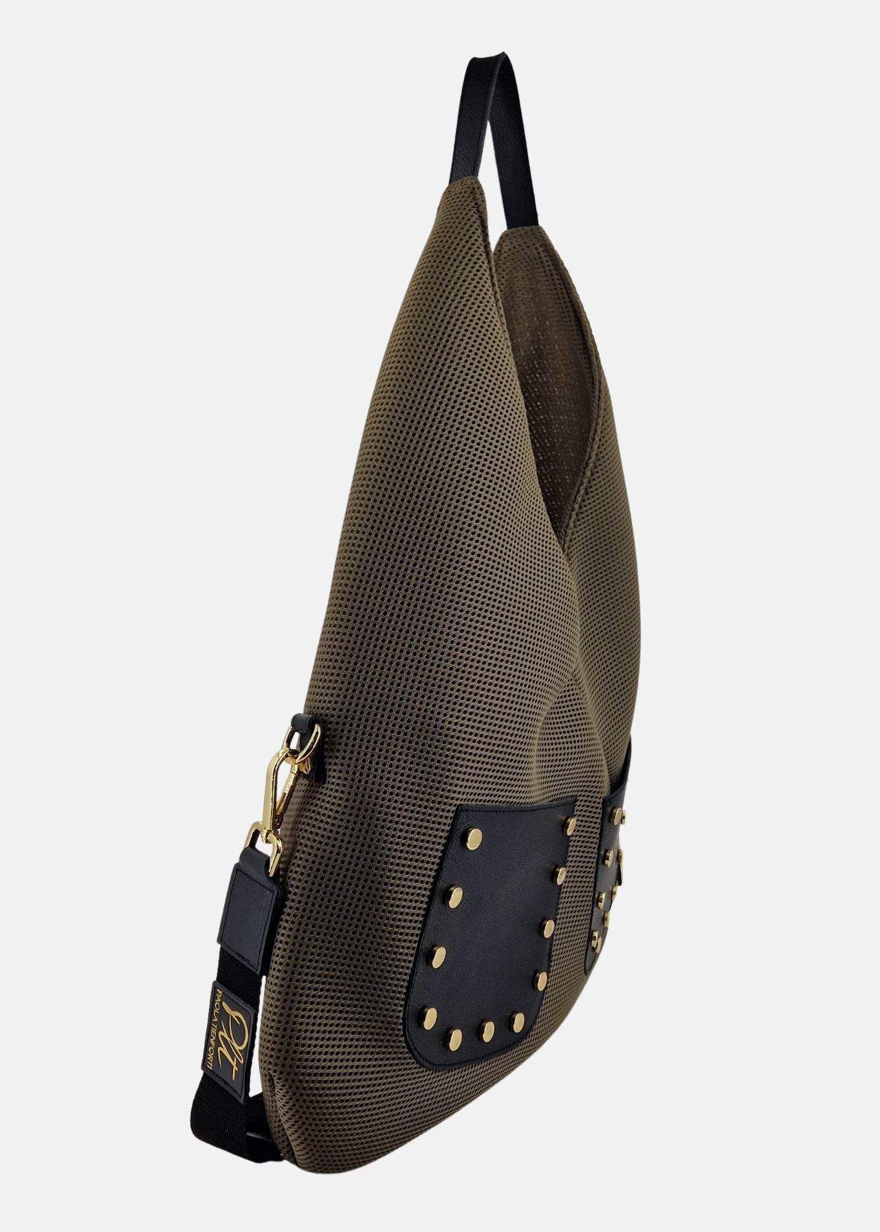 Sacca hobo in tessuto tecnico traforato con tasche e dettagli oro